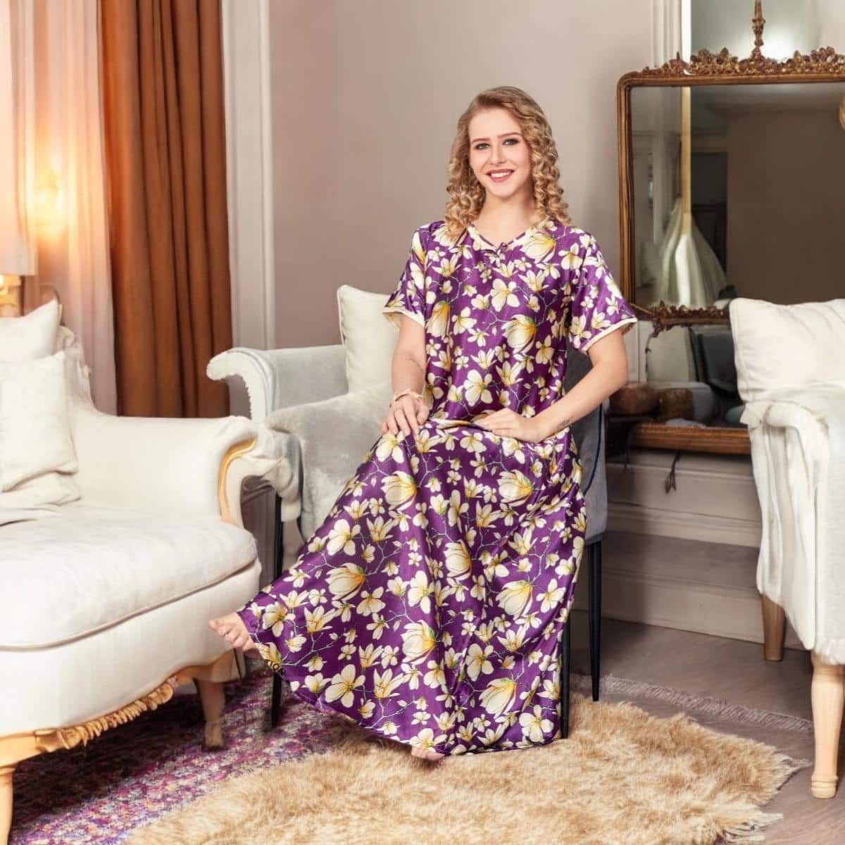 Premium Italian Satin Nighty With V Neck-Premium Quality and For Your Ease And Comfort. Giving You The Confidence To Express Your Individuality.